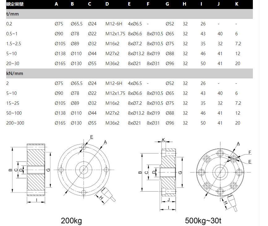 美國AiLogics稱重傳感器相關(guān)型號量程: