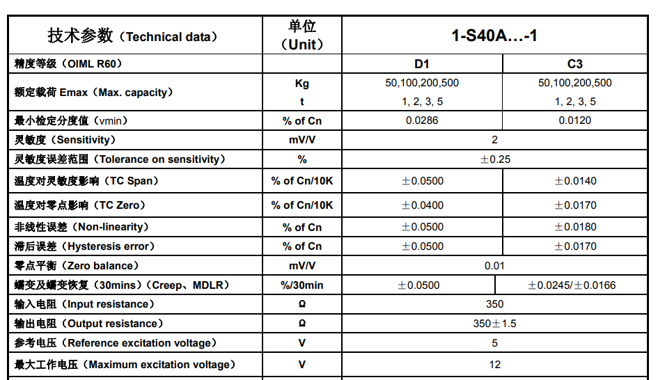 1-S40AC3/50Kg-1稱重傳感器;1-S40AC3/100Kg-1稱重傳感器;1-S40AC3/200Kg-1稱重傳感器;1-S40AC3/500Kg-1稱重傳感器;1-S40AC3/1t-1稱重傳感器;1-S40AC3/2t-1稱重傳感器;1-S40AC3/3t-1稱重傳感器;1-S40AC3/5t-1稱重傳感器EkE廣州南創(chuàng)電子科技有限公司
