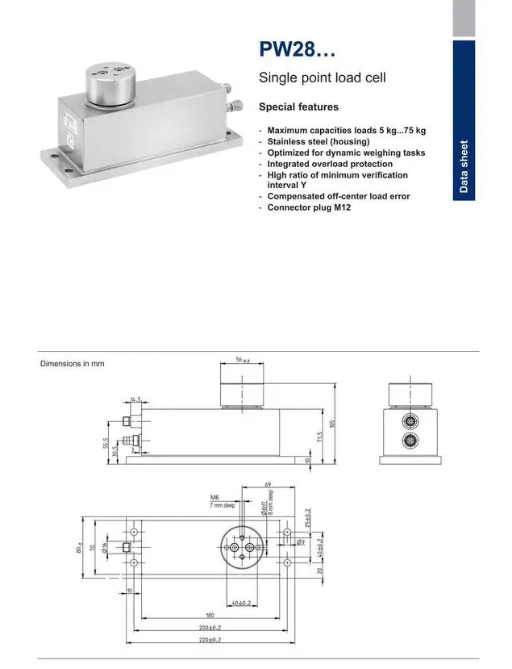 最小檢定分度值高達(dá) 20000,PW28 單點(diǎn)稱(chēng)重傳感器完全滿(mǎn)足 C3 精度等級(jí)要求,可為您提供非常精確的測(cè)量結(jié)果。不銹鋼外殼固有的高剛度,使其非常適用于靜態(tài)和動(dòng)態(tài)應(yīng)用。IP67 防護(hù)等級(jí)可用于惡劣的工業(yè)環(huán)境。所有PW28稱(chēng)重傳感器,無(wú)論其量程大小,均內(nèi)置過(guò)載保護(hù),可防止意外過(guò)載。2S2廣州南創(chuàng)電子科技有限公司