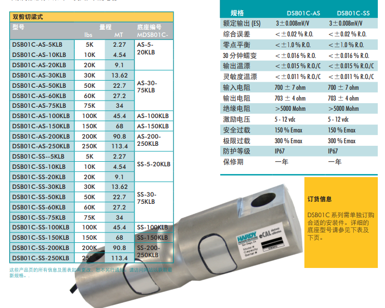 美國(guó)hardy哈帝稱(chēng)重傳感器相關(guān)型號(hào)量程:ouD廣州南創(chuàng)電子科技有限公司