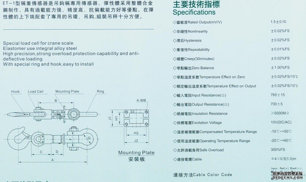 ET-1-1T稱(chēng)重傳感器技術(shù)參數(shù):
