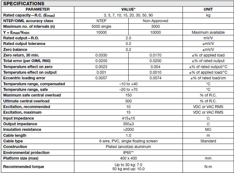 最大安全負(fù)載< ± 0.025 %FS < ± 0,022 %FS < ± 0.018 % FS