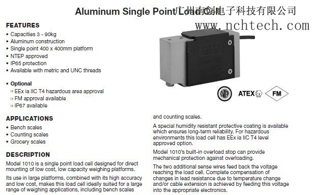 美國TEDEA 1010-20kg稱重傳感器 各項技術(shù)指標(biāo)nnW廣州南創(chuàng)電子科技有限公司