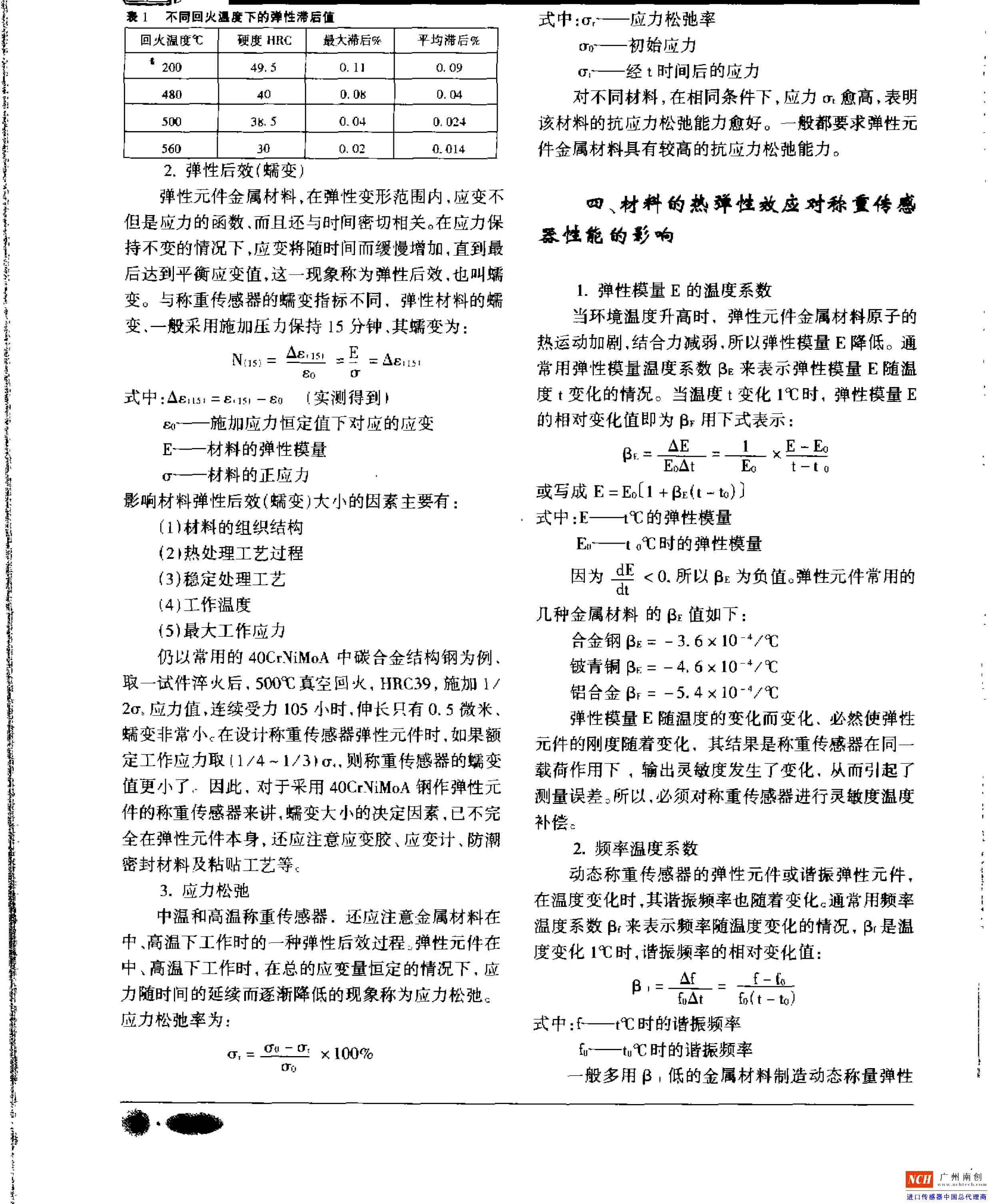 2 應(yīng)力值,連續(xù)受力105小時,伸長只有0.5微米,蠕變非常小 在設(shè)計稱重傳感器彈性元件時,如果額定工作應(yīng)力取(1/4—1/3) 則稱重傳感器的蠕變值更小了 因此,對于采用40CrNiMoA錒作彈性元