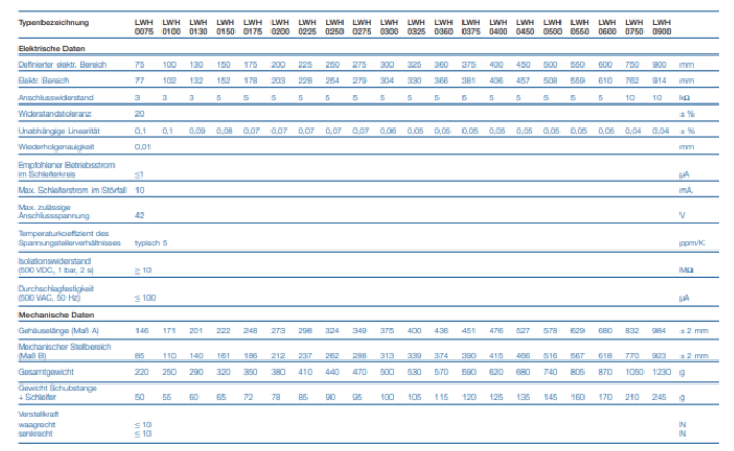 德國NOVOTECHNIK位移傳感器LWH-0050產(chǎn)品技術參數(shù):