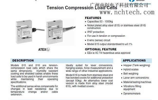 美國(guó)特迪亞tedea 615-750kg稱重傳感器特性:j7l廣州南創(chuàng)電子科技有限公司