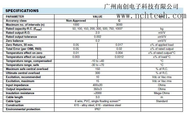 美國(guó)特迪亞tedea 615-750kg S型稱重傳感器各項(xiàng)技術(shù)指標(biāo):          j7l廣州南創(chuàng)電子科技有限公司