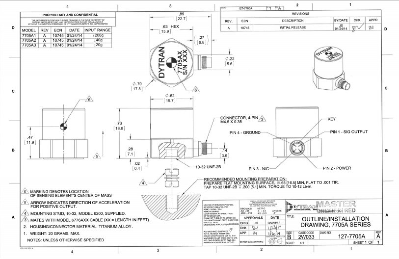美國(guó)Dytran7705A1加速度傳感器規(guī)格圖: