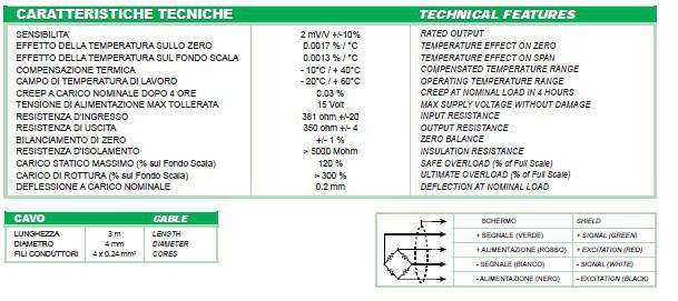 Laumas SA-150kg稱重傳感器技術(shù)指標(biāo):