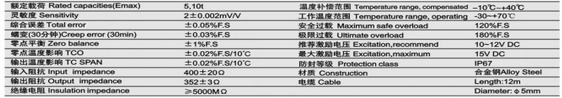 BHS-5T稱重傳感器絕緣電阻:≥5   破壞載荷:>350ADN廣州南創(chuàng)電子科技有限公司