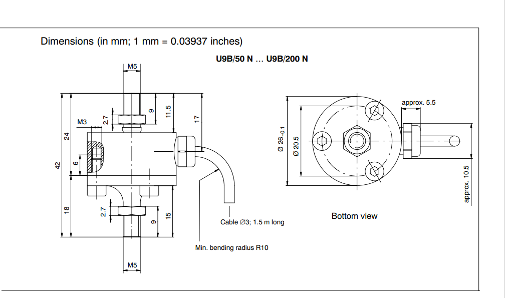 HBM U9B力傳感器尺寸圖:8ou廣州南創(chuàng)電子科技有限公司
