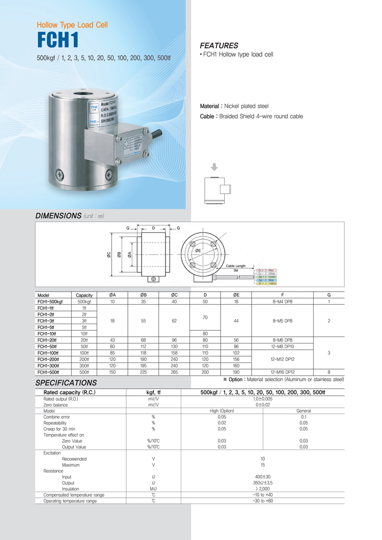 韓國Fine稱重傳感器 FCH1-200T型號其它相似型號:yEO廣州南創(chuàng)電子科技有限公司