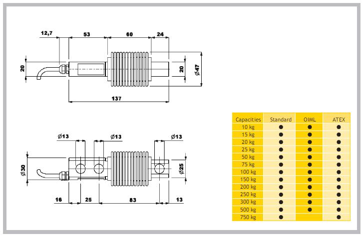 能力FS (的Emax )10 ÷ 750公斤10 ÷ 500公斤25 ÷ 500公斤