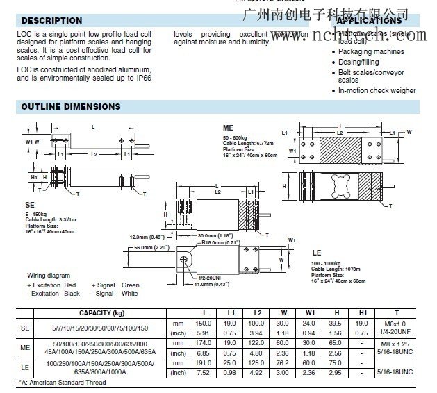 應(yīng)用:平臺(tái)秤(單支傳感器) 包裝秤 定量給料 皮帶秤 分選秤k0V廣州南創(chuàng)電子科技有限公司