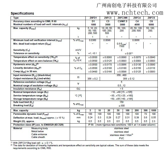 Z6FC4/200KG Z6FC4/500KG Z63AC3/50KG Z63AC3/100KG Z63AC3/200KG47z廣州南創(chuàng)電子科技有限公司