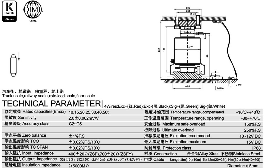 產(chǎn)品型號(hào): ZSF-A-10T柱式稱重傳感器