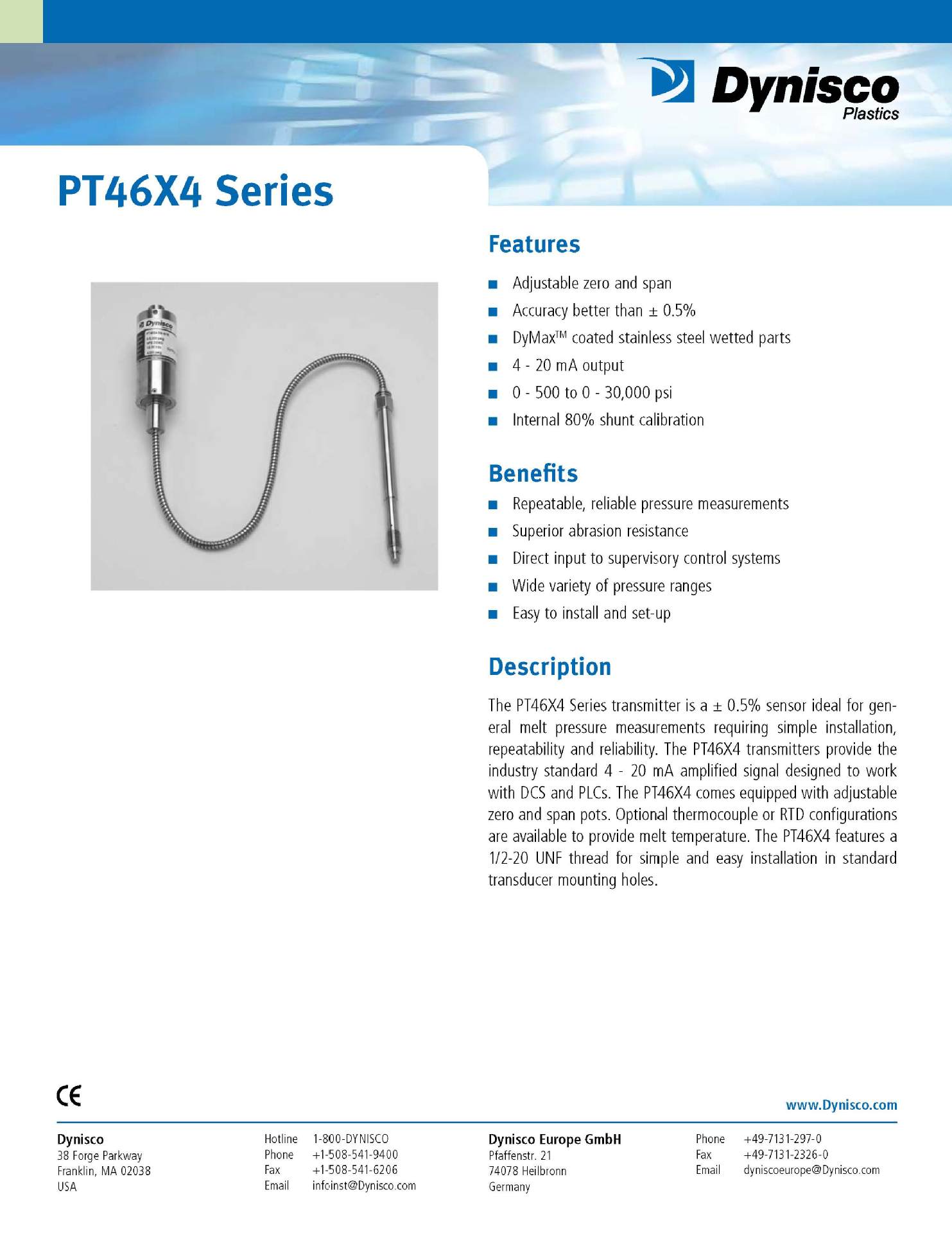 PT462E-35MPA-6/18美國(guó)Dynisco丹尼斯科壓力傳感器 變送器