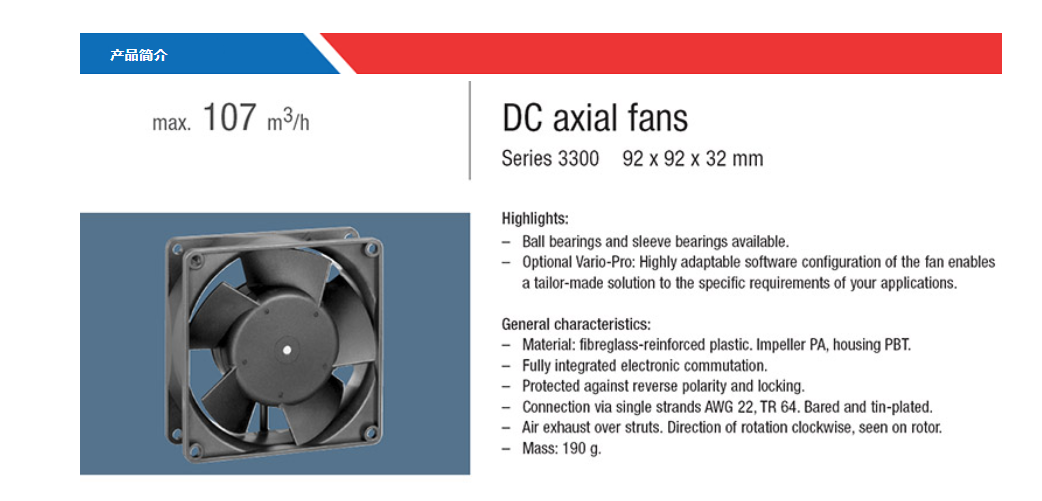 ebmpapst風扇3314 24DC 2.4W可通過外置電路的脈寬調(diào)制(PWM)或電壓調(diào)節(jié)來調(diào)節(jié)風機轉(zhuǎn)速,VARIOFAN:通過內(nèi)置或外置的溫度傳感器,風機的運行可隨著溫度的變化而變化。 ZPh廣州南創(chuàng)電子科技有限公司