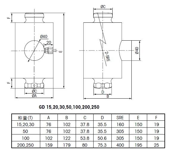 GD-200T GD搖柱式稱(chēng)重傳感器,容量200T,20M電纜CCA廣州南創(chuàng)電子科技有限公司