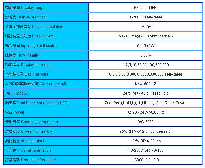 臺(tái)灣JIHSENSE JS-300稱重顯示控制器產(chǎn)品介紹:AA1廣州南創(chuàng)電子科技有限公司
