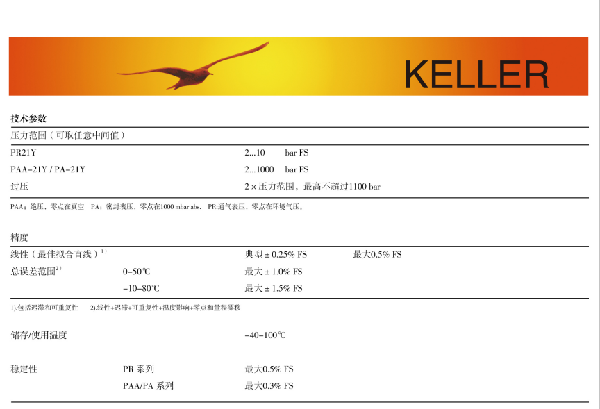 KELLER PA-21Y壓力變送器更多產(chǎn)品詳細(xì)資料請點(diǎn)擊KELLER壓力變送器,進(jìn)入頁面可查找KELLER壓力傳感器型號、凱樂壓力變送器技術(shù)參數(shù)選型資料,以及凱樂壓力傳感器具體安裝技術(shù)指導(dǎo)信息。rKQ廣州南創(chuàng)電子科技有限公司