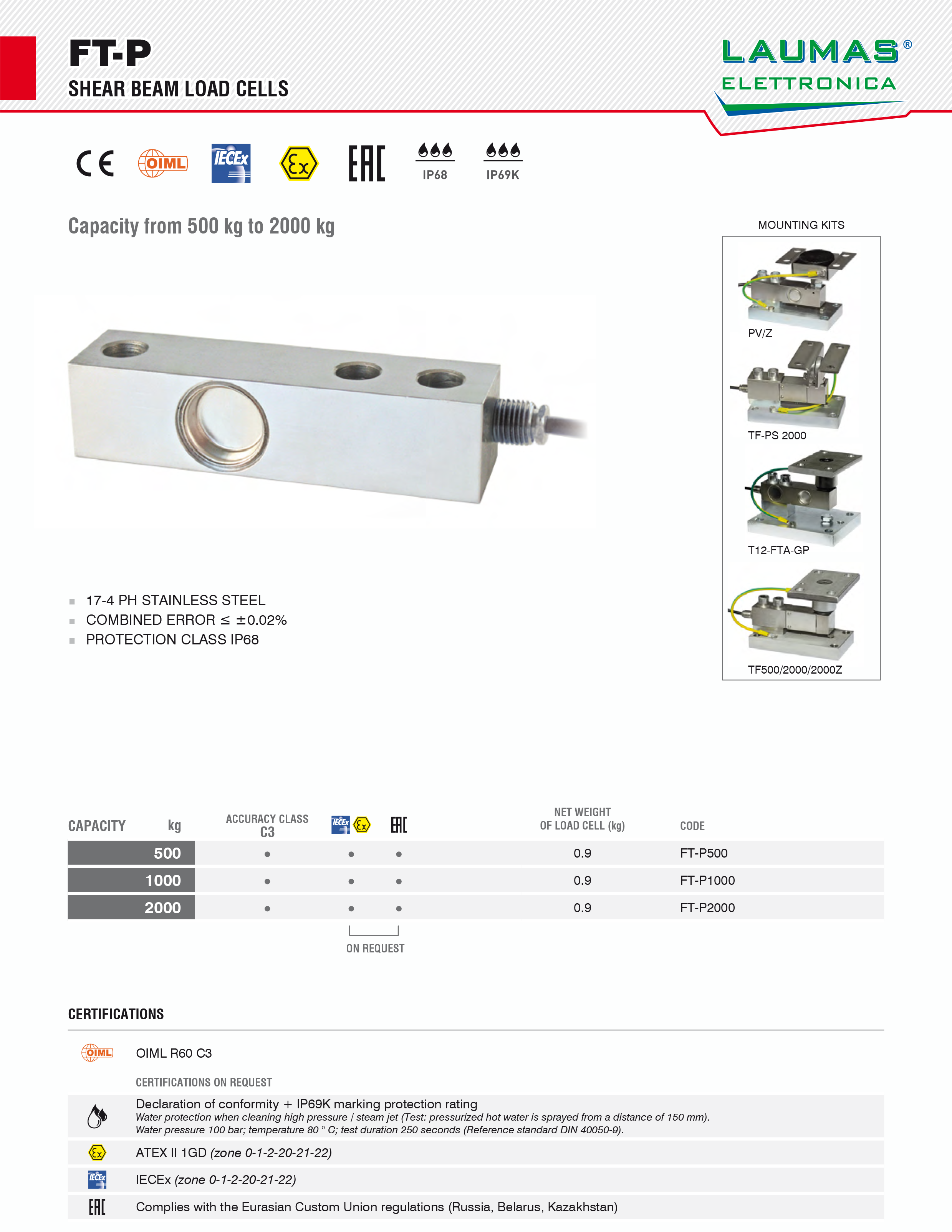 FT-P2000Kg稱重傳感器 意大利Laumas