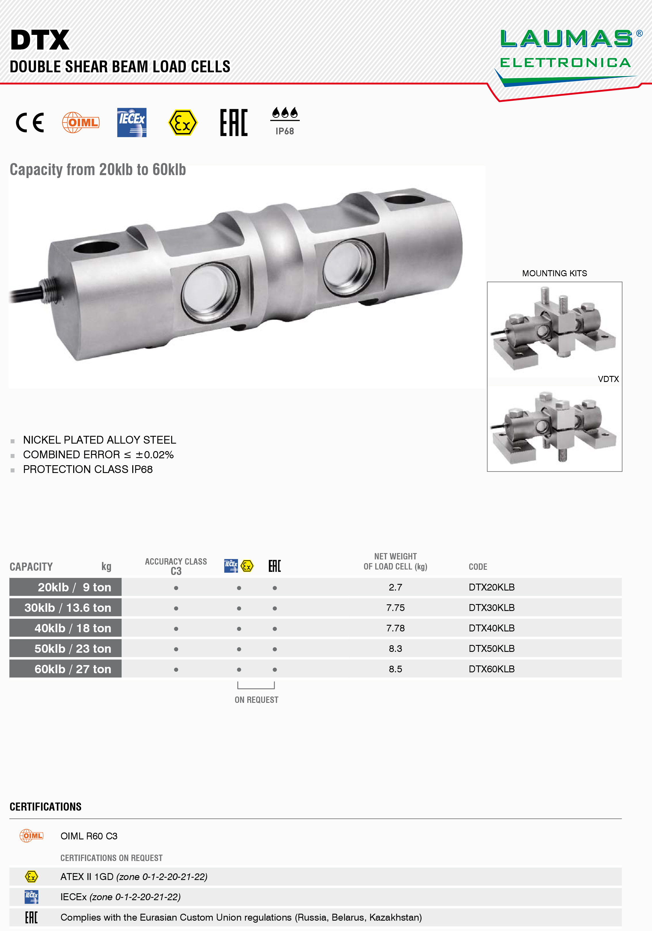 DTX-20Kg DTX-50Kg雙剪梁稱重傳感器_意大利Laumas
