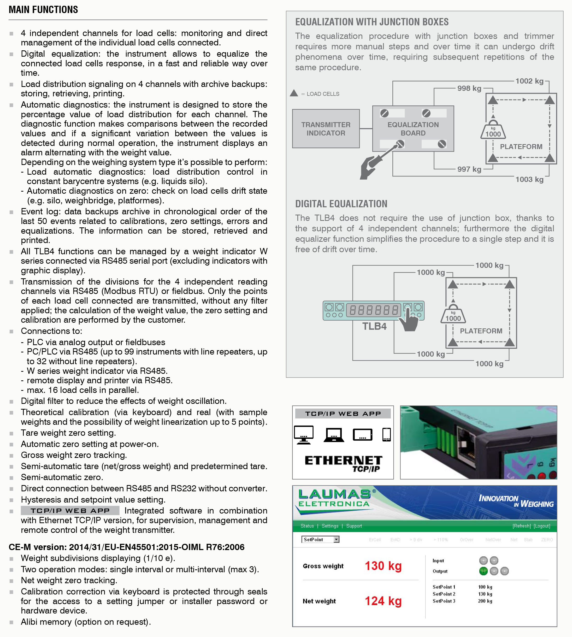 • The TLB4 series allows to have same benefits and performance of an advanced digital weighing system even using analog load cells.