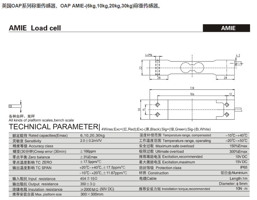 量程:AMIE-6kg、AMIE-10kg、AMIE-20kg、AMIE-30kg    CZk廣州南創(chuàng)電子科技有限公司