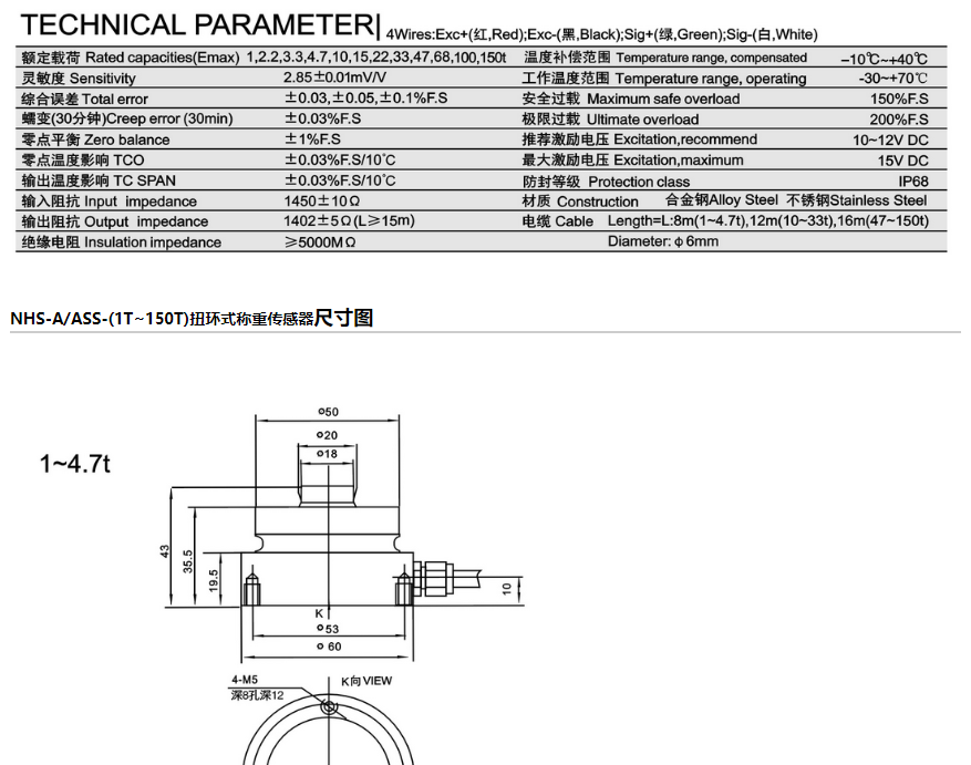 寧波柯力稱重傳感器NHS-ASS-10t產(chǎn)品技術(shù)參數(shù)及尺寸圖:5aj廣州南創(chuàng)電子科技有限公司