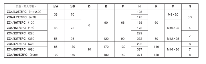 美國NCH稱重傳感器ZC4-100T規(guī)格:
