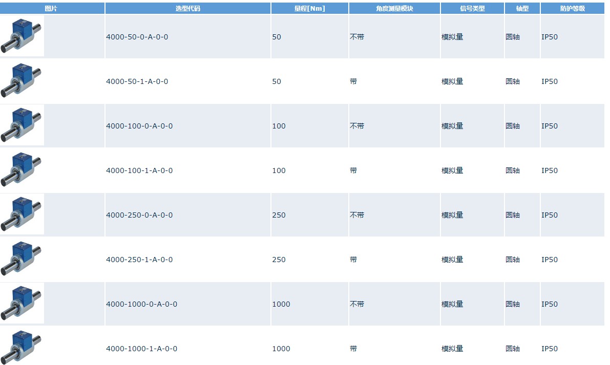 FC-S4000系列 NCTE-AG 動態(tài)扭矩傳感器代碼型號有: