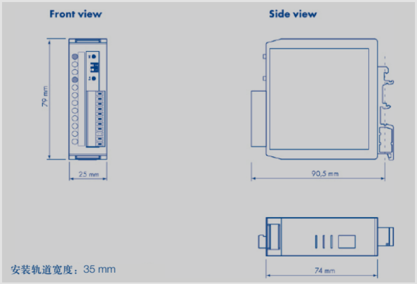 IOF廣州南創(chuàng)電子科技有限公司標(biāo)準(zhǔn)導(dǎo)軌固定安裝,符合 DIN EN 50022 標(biāo)準(zhǔn)