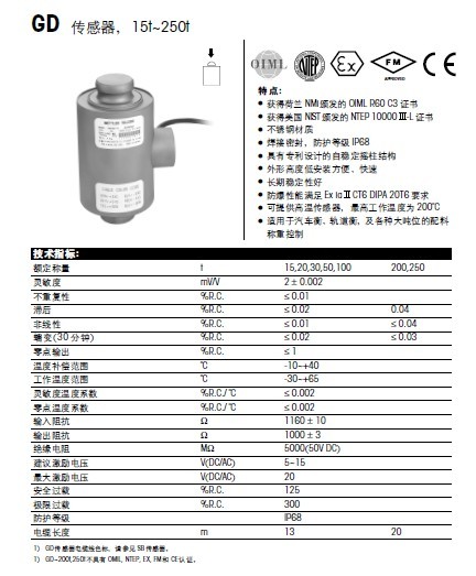 瑞士METTLER TOLEDO GD-30t稱重傳感器技術(shù)參數(shù)圖:2K2廣州南創(chuàng)電子科技有限公司