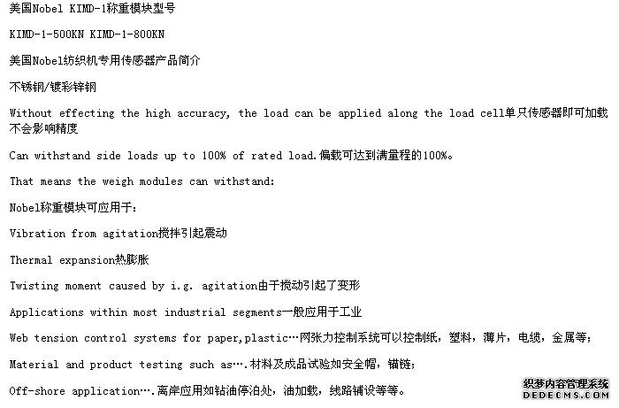美國(guó)Nobel KIMD-M-500KN稱重模塊型號(hào)ocm廣州南創(chuàng)電子科技有限公司