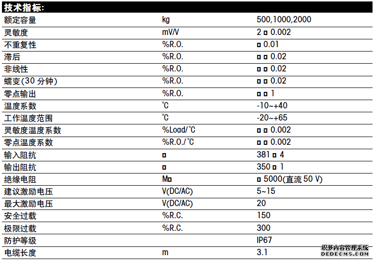 il-500kg 單點式鋼質(zhì)傳感器,容量500kg,2.5m電纜