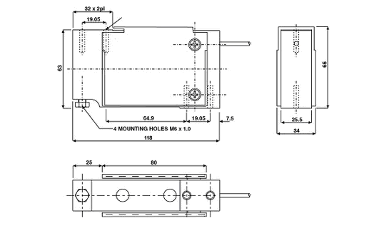 美國特迪亞tedea 1010稱重傳感器產品尺寸圖:QVi廣州南創(chuàng)電子科技有限公司