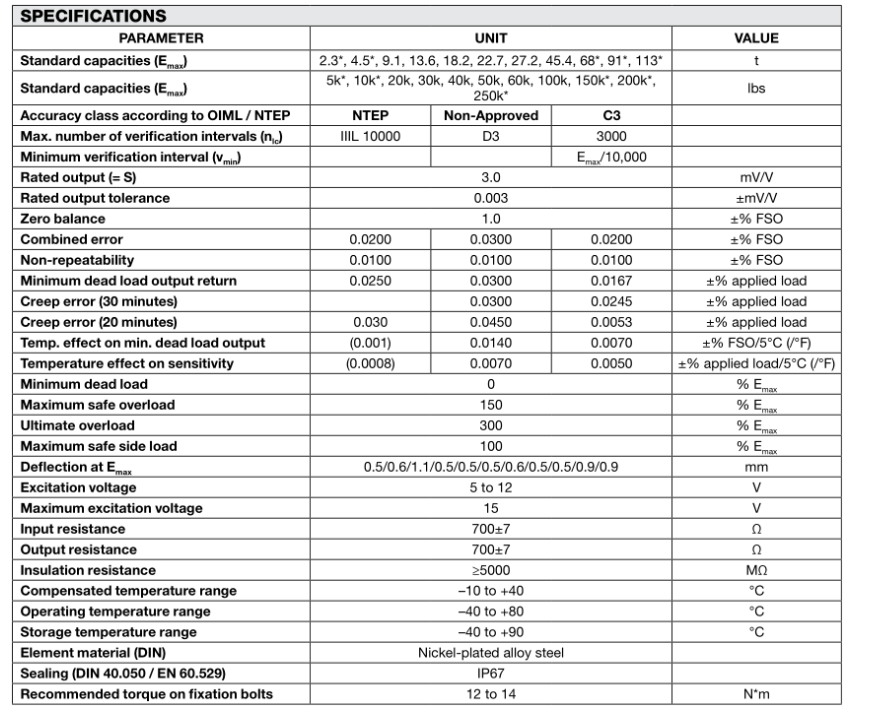 84150: DEB 9223-B10-50k 50000 lb 40 ft RTI 3mv/v 700 Ohm WW NTEP IIIL 10 M FM SST rqz廣州南創(chuàng)電子科技有限公司
