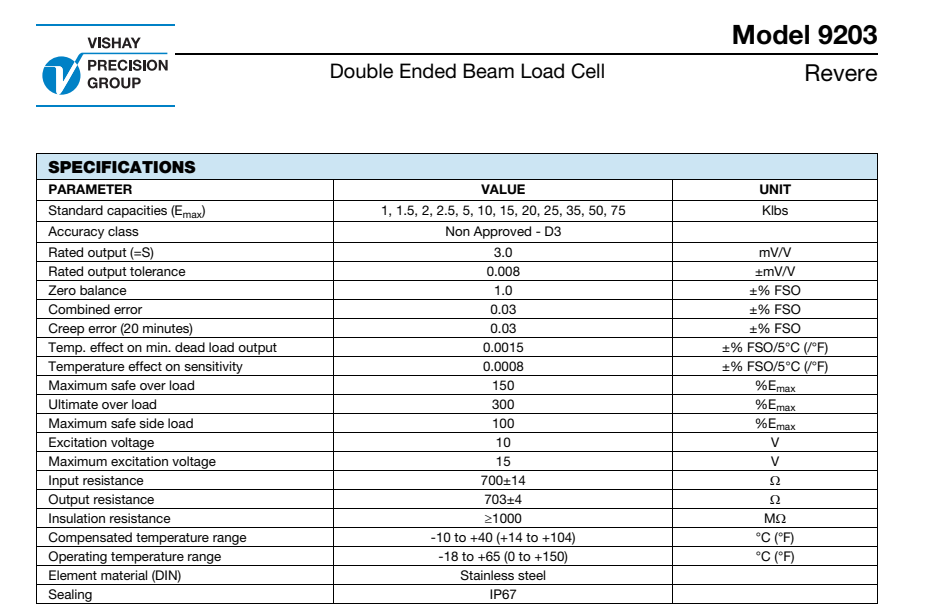 美國(guó)vishay Revere稱重傳感器9203-25klbs產(chǎn)品技術(shù)參數(shù):PNU廣州南創(chuàng)電子科技有限公司