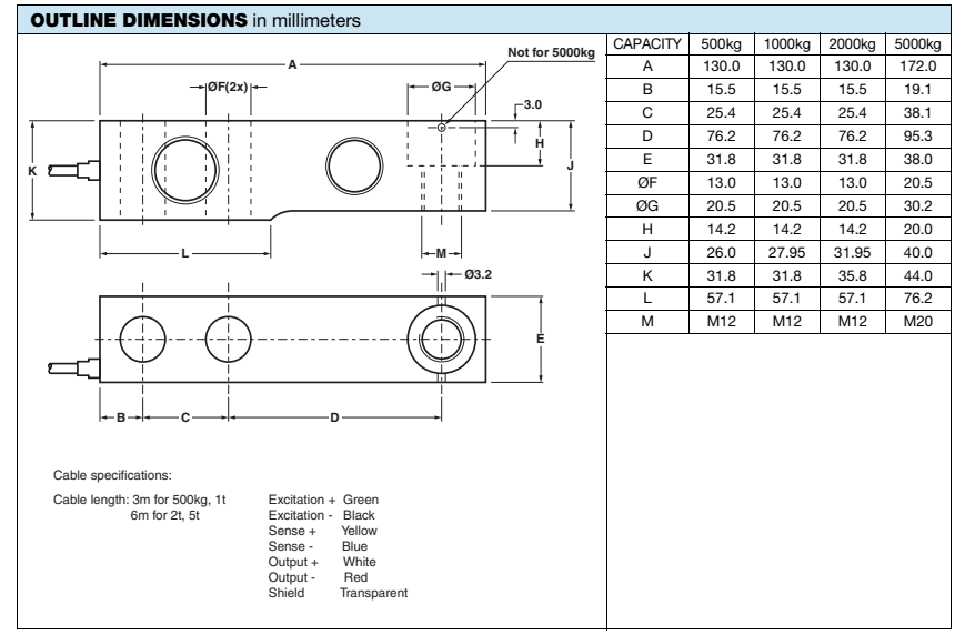 aph廣州南創(chuàng)電子科技有限公司aph廣州南創(chuàng)電子科技有限公司美國vishay Revere稱重傳感器ACB-5000kg產品尺寸圖:aph廣州南創(chuàng)電子科技有限公司