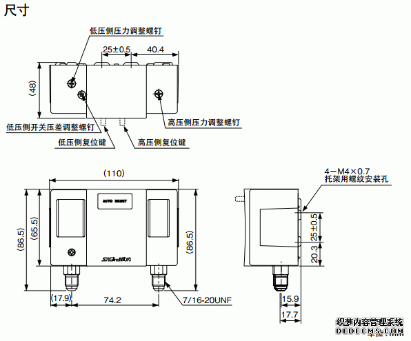 日本鷺宮DYS型高低壓壓力控制器尺寸參考圖:G1D廣州南創(chuàng)電子科技有限公司