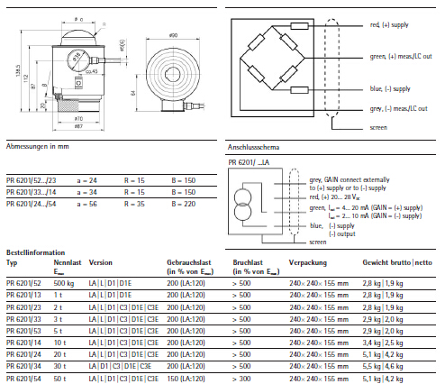 賽多利斯Sartorius PR6201系列稱重傳感器所有量程如下;blm廣州南創(chuàng)電子科技有限公司