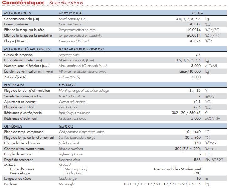 法國(guó)Scaime稱(chēng)重傳感器ZA30X-500KG產(chǎn)品參數(shù)圖:TTB廣州南創(chuàng)電子科技有限公司