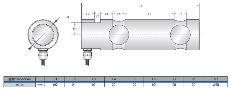 美國傳力DBST-1.5t稱重傳感器產(chǎn)品技術(shù)參數(shù):
