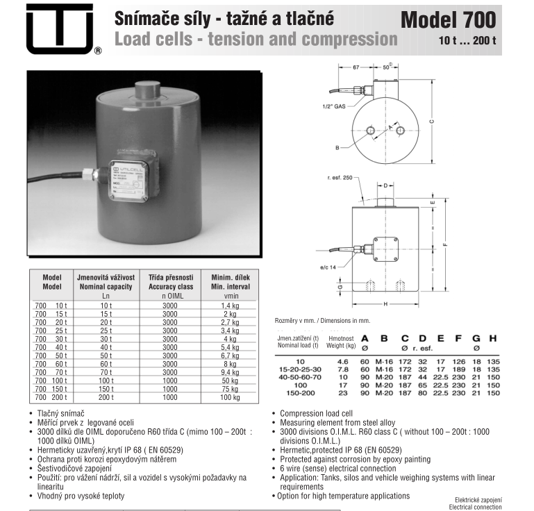 西班牙尤梯爾 MOD700稱重傳感器系列產(chǎn)品介紹: