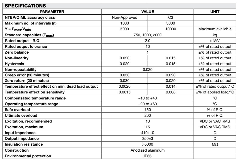 美國(guó)世銓Celtron HOC系列稱(chēng)重傳感器相關(guān)量程如下:oSU廣州南創(chuàng)電子科技有限公司