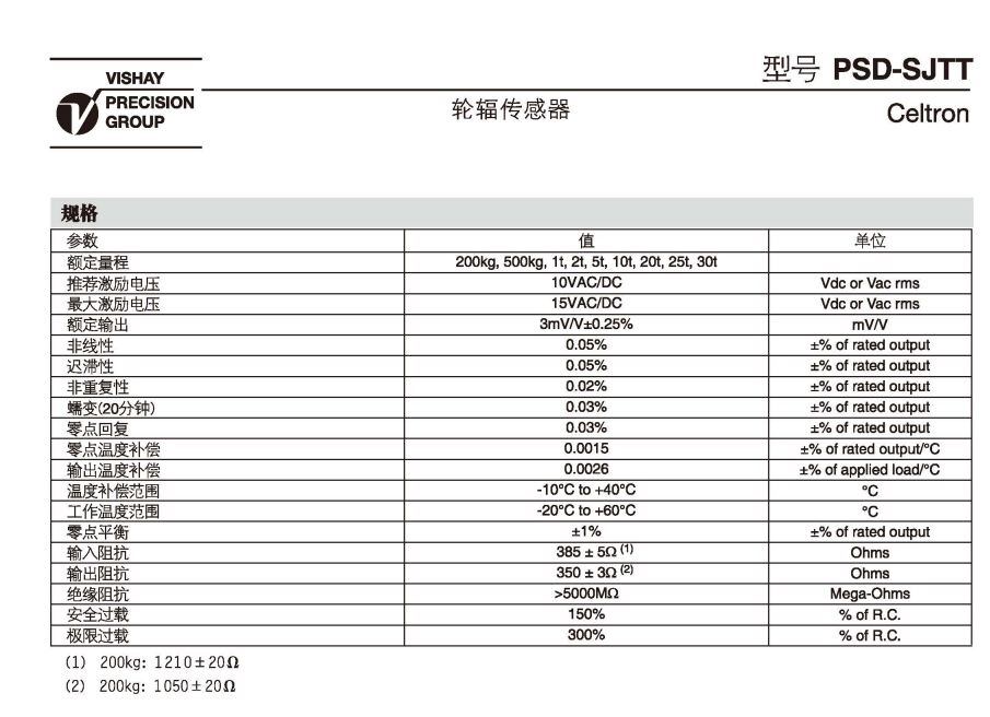 美國vishay celtron PSD-200kgSJTT傳感器更多產(chǎn)品詳細(xì)資料請點擊:celtron稱重傳感器,進(jìn)入頁面可查找vishay celtron傳感器型號、vishay celtron 稱重傳感器技術(shù)參數(shù)選型資料,以及威世世銓傳感器具體安裝技術(shù)指導(dǎo)信息。aBX廣州南創(chuàng)電子科技有限公司