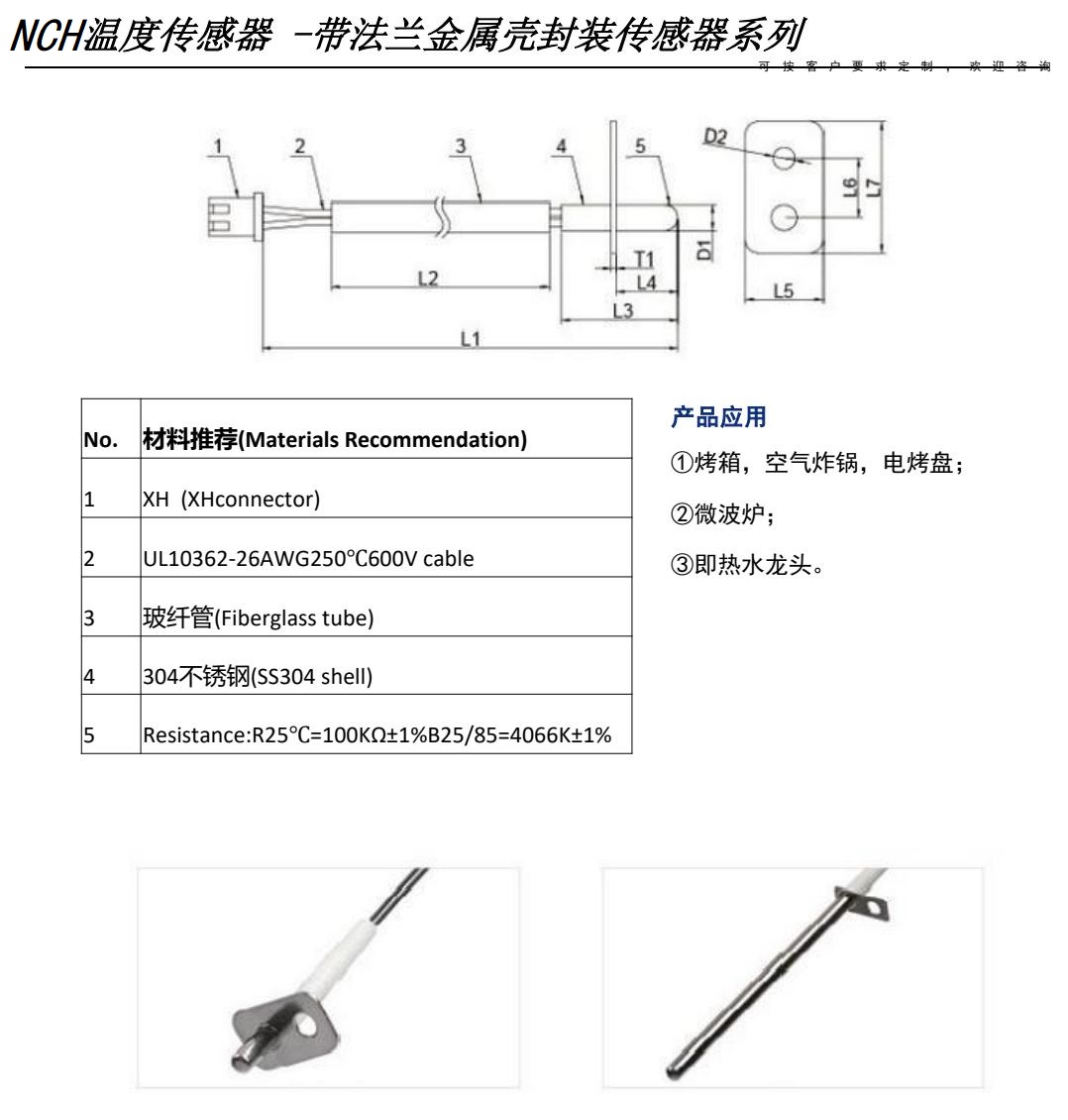 NCH溫度濕度傳感器用于冰箱、冰柜、冷藏室、冷凍室、蒸發(fā)器、壓縮機