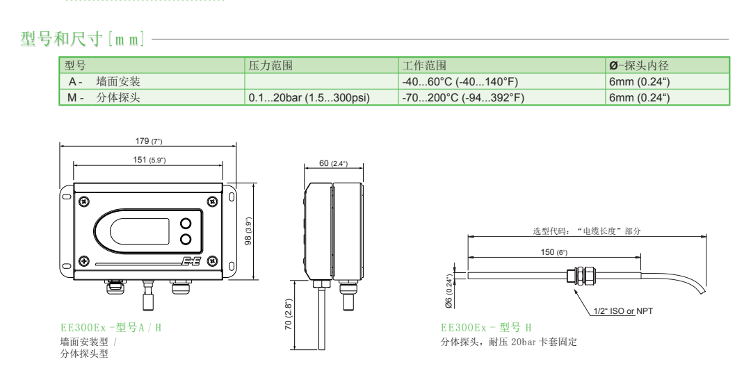 奧地利E+E ee300EX溫濕度顯示儀表型號參考: