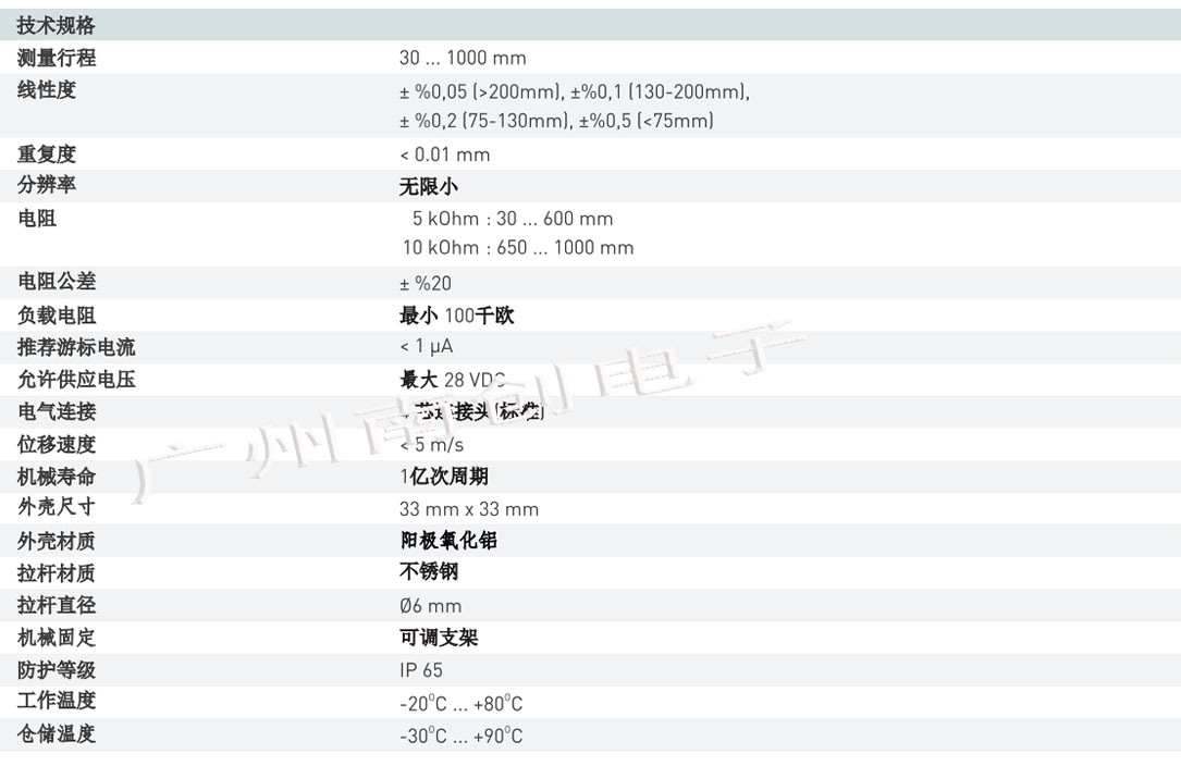 歐普康電阻式線性位移傳感器dTo廣州南創(chuàng)電子科技有限公司